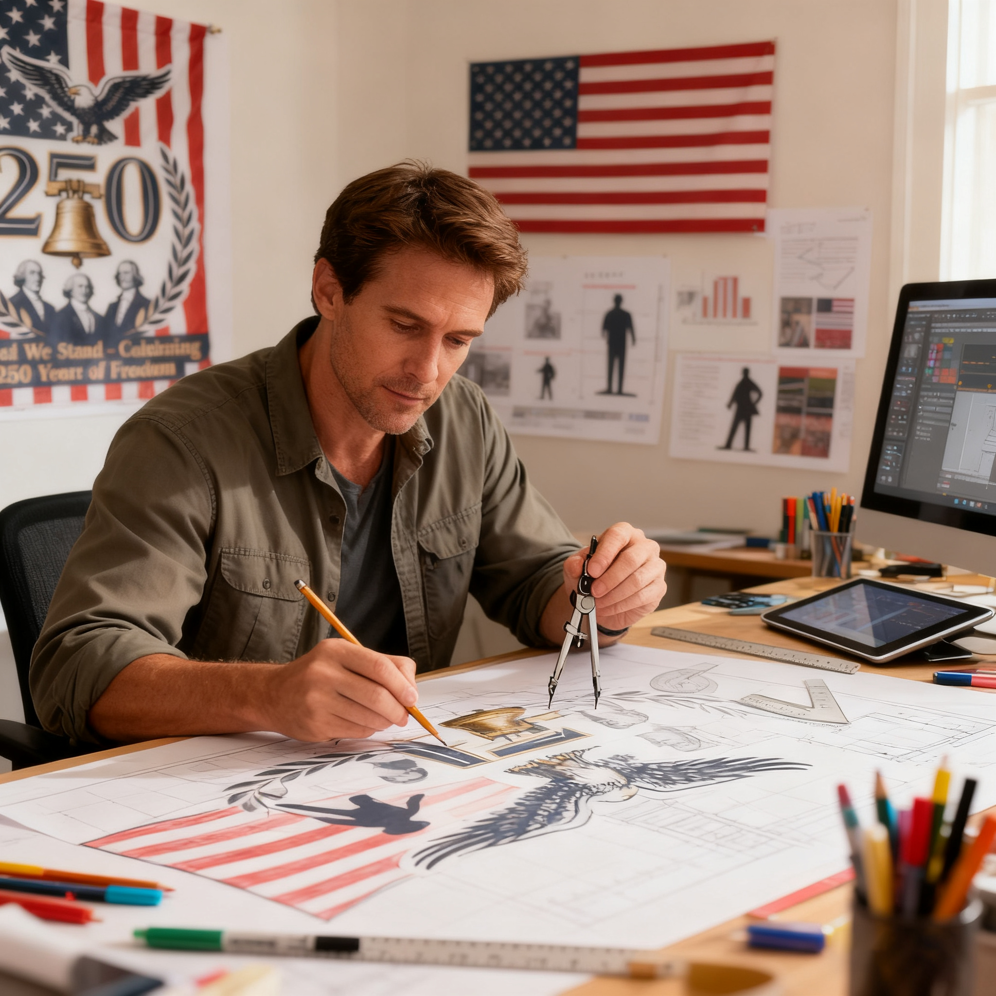 - Embroidery: American flag, eagle, Liberty Bell, "250", and "United We Stand"