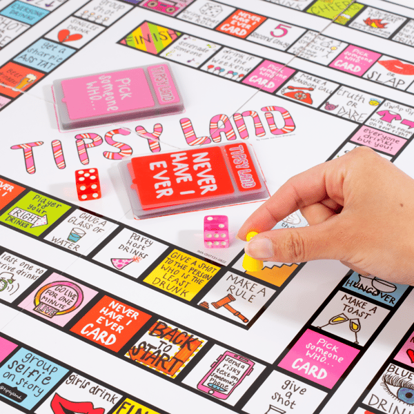 Tipsy Land is a fun, easy-to-play drinking game designed to get everyone laughing, talking, and involved. it's perfect for pre-games, parties, birthdays, and game nights.
